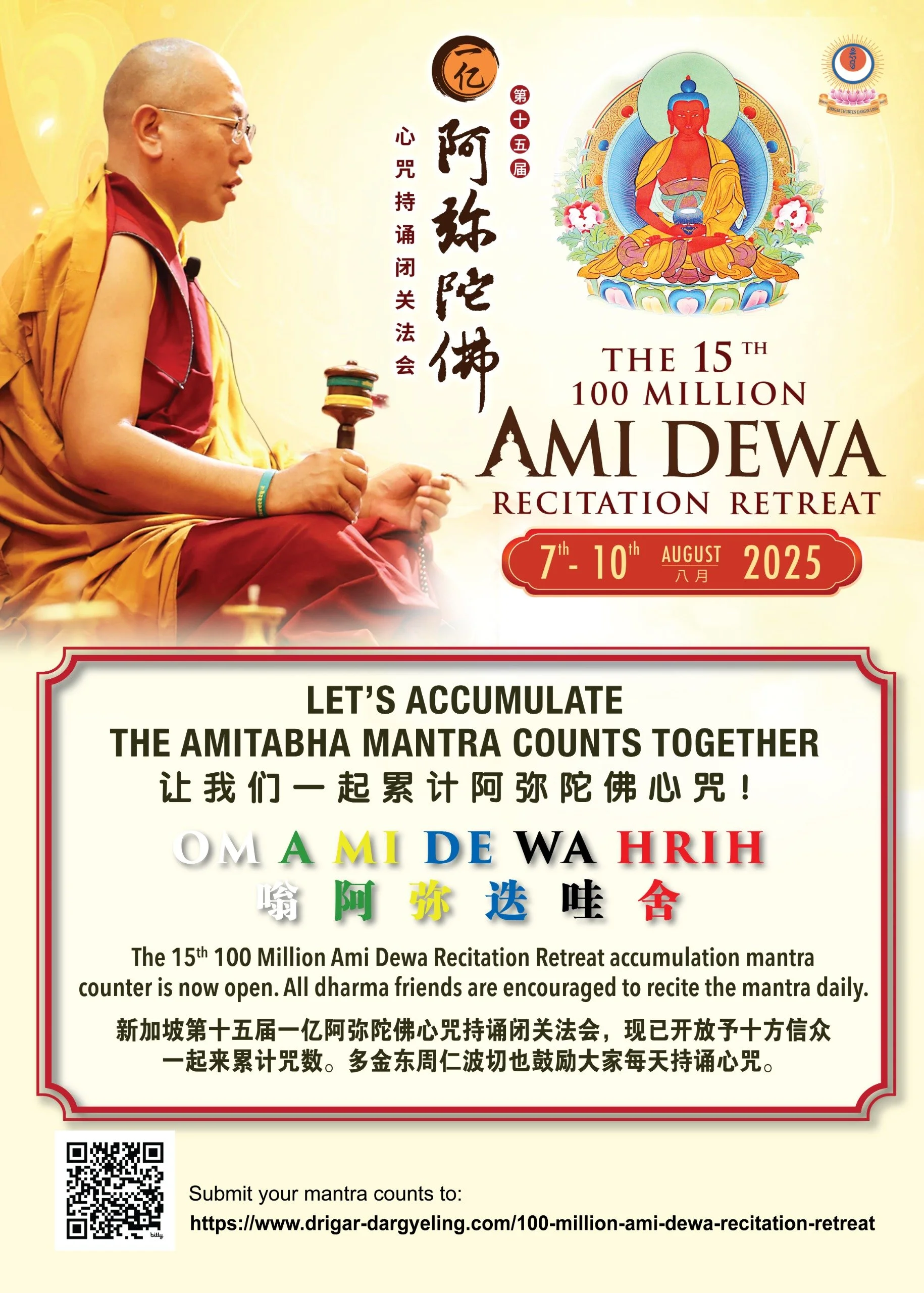 The 15th 100 Million Ami Dewa Recitation Retreat 2025 has come to a perfect completion with 100,125,685 Ami Dewa mantra counts accumulated!