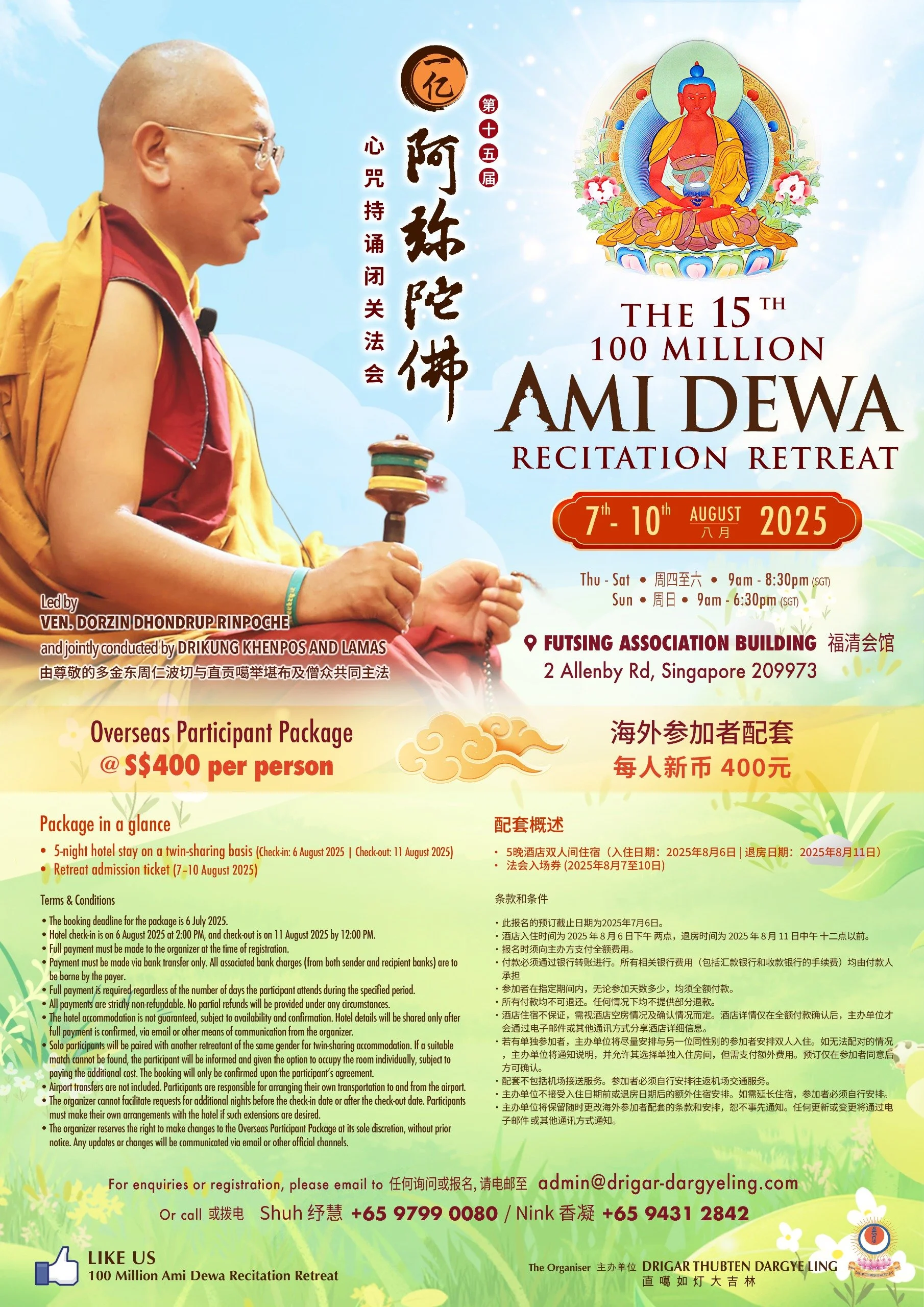 We are overjoyed to announce that ticket sales are now open for the 15th 100 Million Ami Dewa Recitation Retreat, taking place from 7th to 10th August 2025!